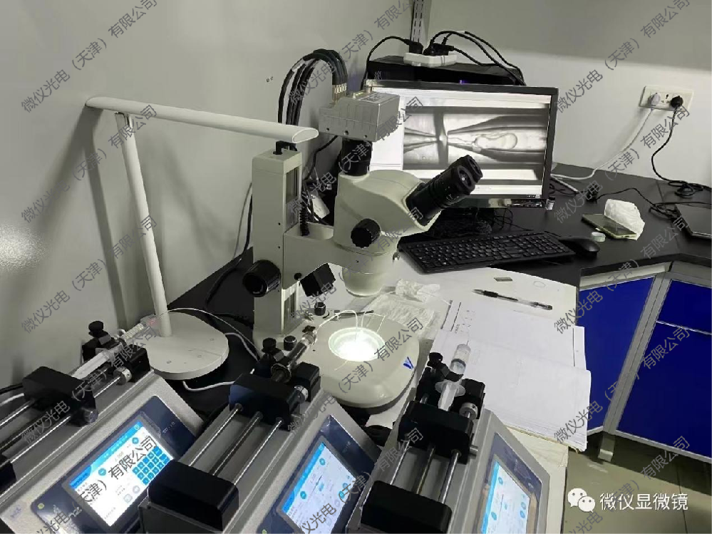 天津海河標測技術檢測有限公司采購三目體視顯微鏡WYT-ET用于觀察血管鉗切口圖層